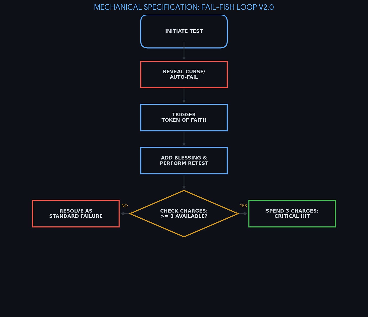 The Loop: You initiate a test you expect to fail (e.g., a “0-charge” spell attack or a high-shroud investigation).